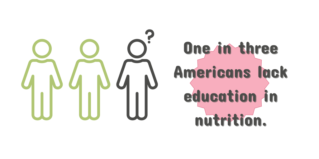 Additionally, in 2022, MyFitnessPal shared results from its Nutrition IQ survey, uncovering that while 81% Americans claim to know nutrition basics, 91% of the general population says they don’t have any idea of how much protein, fiber, carbs, sugar and salt they consume daily. (source) Overall, results found that Americans’ nutritional knowledge is fairly elementary. While most people do know the basics of serving sizes, when it comes to actually identifying foods by nutritional value, they are far off. On average, individuals overestimate calories and protein, while underestimating carbs and fats.